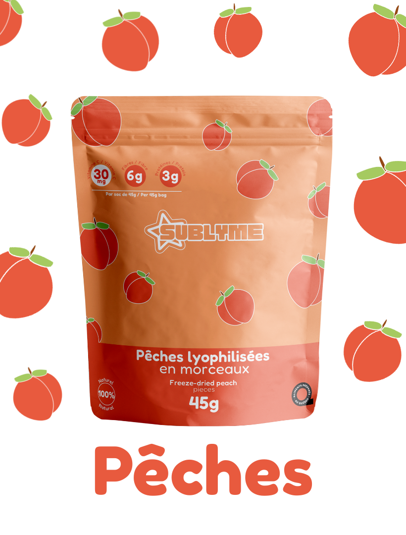 Découvrez nos savoureux morceaux de pêches lyophilisées ! Douces, croquantes et naturellement sucrées, elles conservent toute la richesse et l’arôme du fruit frais, sans aucun ajout. Parfaites pour une collation santé ou pour ajouter une touche fruitée à vos desserts et déjeuners !